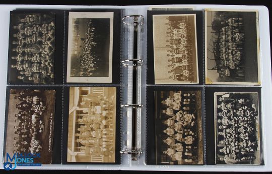 Rare Early 20th Century Rugby Postcard Collection (52): Excellent album, fully sleeved, containing a beautifully curated collection of 52 vintage b/w cards, many teams identified; some used, some unused, including a few French action pictures and some portraits. A must for collectors….