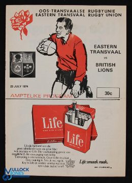 1974 British Lions v E Transvaal Rugby Programme: 12pp, interesting issue, VG