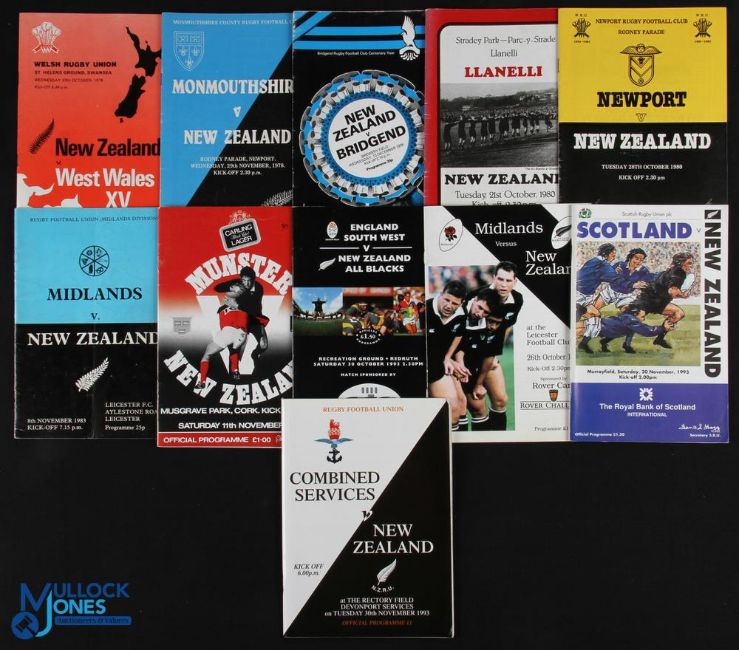 NZ in the UK etc 1978, 1980, 1983, 1989 & 1993 Rugby Programmes (11): 1978 v West Wales, Monmouthshire & Bridgend; 1980 v Llanelli and Newport; 1983 v Midlands; 1989 v Munster; and 1993 v Midlands, SW England, Scotland and the Combined Services. G/VG