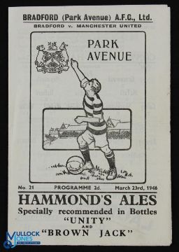 1945/46 Football League (N) Bradford Park Avenue v Manchester Utd match programme, 4 page, 23 March 1946; fair/good. (1)