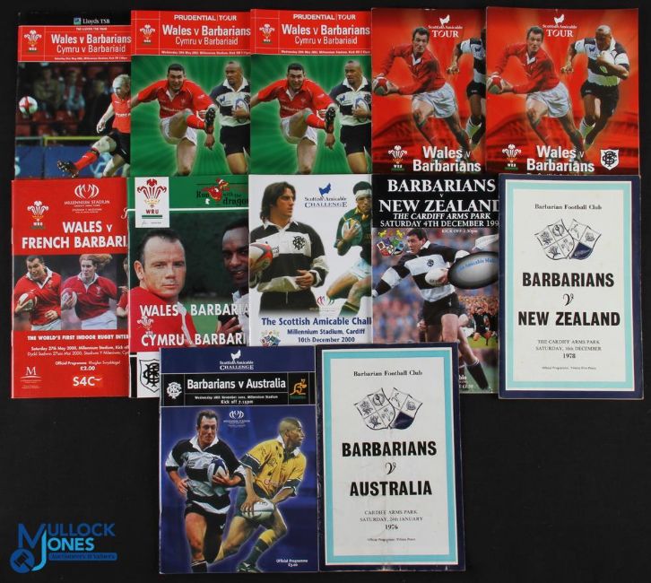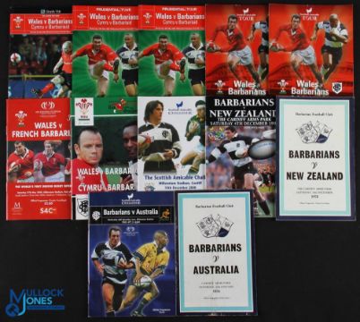 1976-2003 Barbarians Rugby Programmes (12): With some duplication, v Australia 1976 & 2001; v NZ 1978 & 1993; v SA 2000; and v Wales 1996, 2000, 2001(2), 2002(2) and 2003. VG