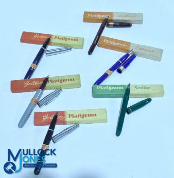 Platinum Fountain Pens to include models Senior - Reliance x2 Red and Blue - Golden x3 Grey. Blue. Black all in original boxes (6)