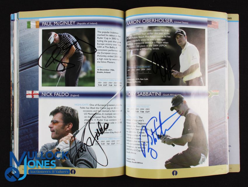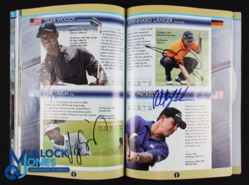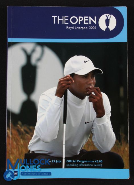 Tiger Woods 2006 Royal Liverpool Open Golf Champion Profusely Signed Programme - signed by the Champion Tiger Woods to his player profile together with a further 65 signature player profiles to incl major winners Langer, Vijay Singh, Mickelson, Darren Clark, Michael Campbell, Nick Faldo, Zach Johnson, Sergio Garcia, Tom Lehman, Ben Curtis, Olazabal, Mike weir, David Toms, Immelman, Justin Leonard, Retief Goosen, Adam Scott, Padraig Harrington, Stewart Cink, Todd Hamilton, Ernie Els, Davis Love, Jim Furyk, Henrik Stenson, Rich Beem, Angel Cabrera, John Daly Paul Lawrie, David Duval, Charl Schwartzel, Seve Ballesteros (p.124) Tom Watson et al to name just a few!! plus a further 35x random signatures