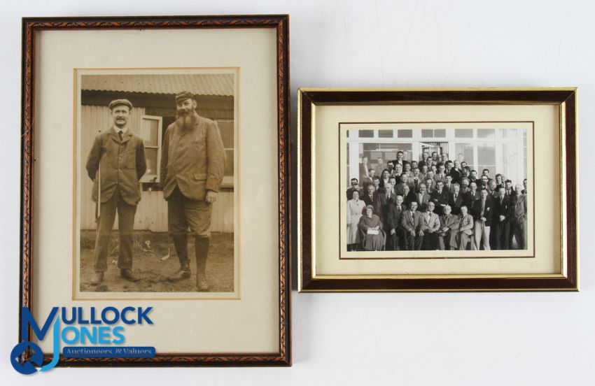 J.H Taylor 2x Signed Royal North Devon Golf Club related Photographs to incl standing outside RNDGC with W G Grace signed on the back J H Taylor and dated 1961 mf&g 9.75" x 7.5"; and another seated with Devon Artisans Meeting at Royal North GC signed and dated on the reverse May 11th 1958 together with details of the event - mf&g 5.5" x 7.5" Note: From The Estate of The Late David Easby
