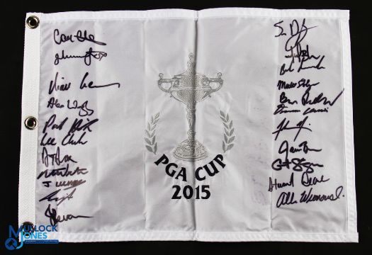 2015 PGA Cup 27th USA v GB&I Signed Golf Pin Flag - played at CordeValle Golf Club St Martin USA signed neatly by both teams down each side - with GB&I winning 13.5 -12.5 Note From the Estate of The Late Sandy Jones CEO of The PGA