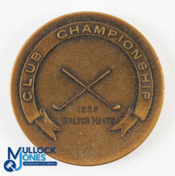 1958 Surrey County Golf Union 'Club Championship' Bronze Medal - engraved 1958 Walton Heath c/w Garrard & Co fitted case - overall 3" x 3"# Note: From The Estate of The Late David Easby