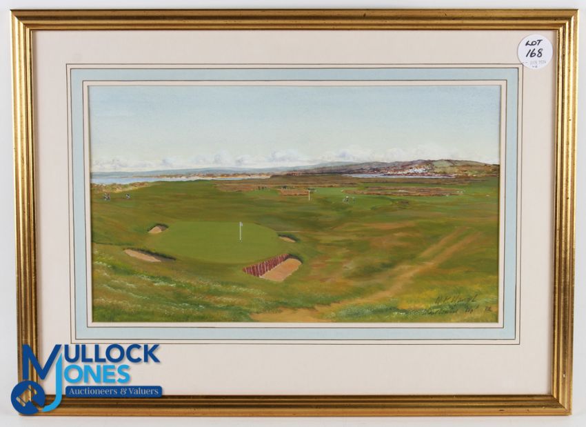 Bill Waugh - Westward Ho! Golf Links original watercolour signed and dated '82 comprising a view across the golf course c/w players and Northam in the distance - image 10.25" x 17.25" - overall 17.5" x 24" Note: From The Estate of The Late David Easby