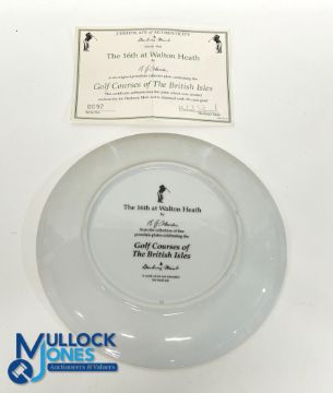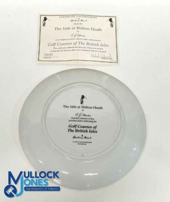 Danbury Mint - "Golf Courses of The British Isles" Porcelain Plate - "The 16th at Walton Heath" - signed by the artist A G Coleman, ltd ed no. 92 - c/w 22 carat gold trim and COA - measures 8.25" dia Note: From The Estate of The Late David Easby