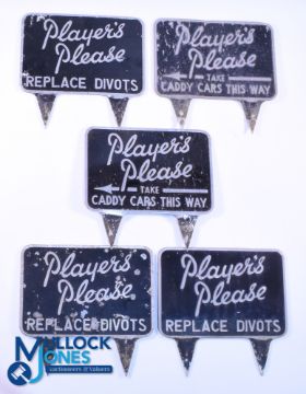 Collection of Golf Club Alloy Tin Plate Golf Course Signs (5) - to incl 2x "Players Please Take Caddy Cars This Way" and 3x "Players Please Replace Divots" - possibly Players Cigarette Advertising plaques - overall 8.5" x 8.75" Note: From The Estate of The Late David Easby