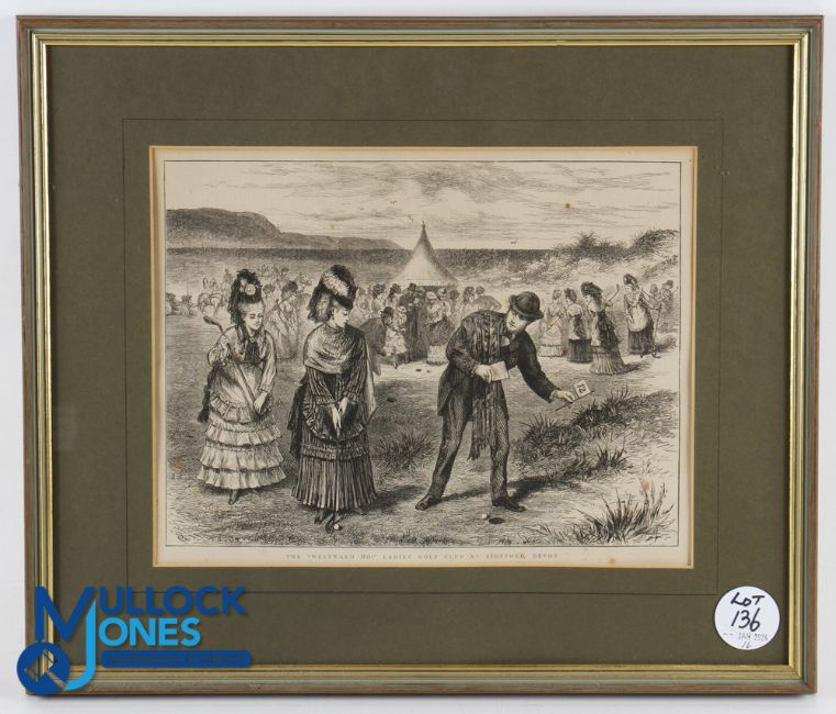 Early Westward Ho! Ladies Golf Club original lithograph late 19thc - depicting a lady's golf championship playing with players using longnose golf clubs - image 9.5" x 12" - overall 15.25" x 18" Note: From The Estate of The Late David Easby