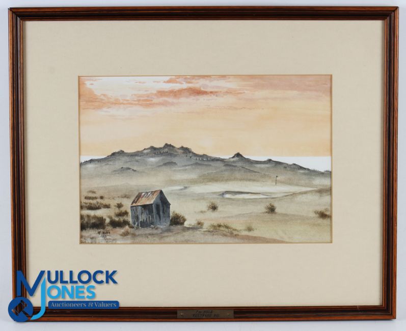 "Westward Ho! Golf Course - 7th Hole and Green" original watercolour signed and dated T Howe 1989 - image 8.5" x 13.25" - overall 16.5" x 20.25" Note: From The Estate of The Late David Easby