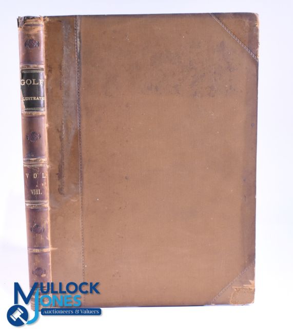 1901 "Golf Illustrated - The Weekly Organ of the Royal and Ancient Game - Incorporating Golf" bound volume comprising a complete run from No.95 Vol. VIII Friday 5th April through to No. 107 Friday 28th June - in half leather and brown cloth boards with ribbed spine c/w gilt details - corners and edges slightly worn, owners name and address hand written to the title page - some red staining from the original publishers cloth boards - great detail throughout covering America, Europe, South Africa et al, plus good assortment of golfing advertisements - well illustrated and clean internally (G) Note: From The Estate of The Late David Easby