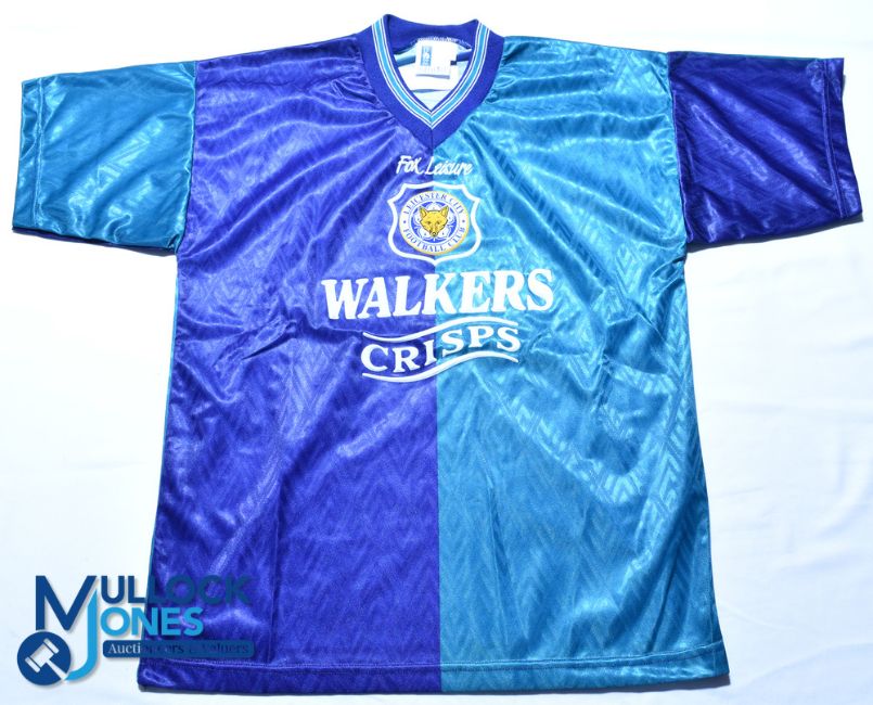 1995-1996 Leicester City FC Third kit shirt - Fox Leisure / Walkers Crisps, size 38/40, blue/green, short sleeves, VG