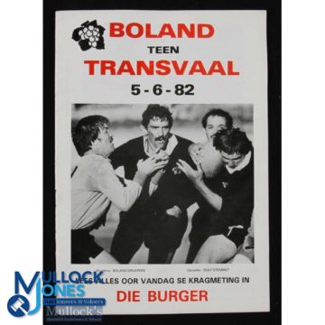 1982 Boland v Transvaal Rugby programme: Issue from this June clash in S Africa. VG