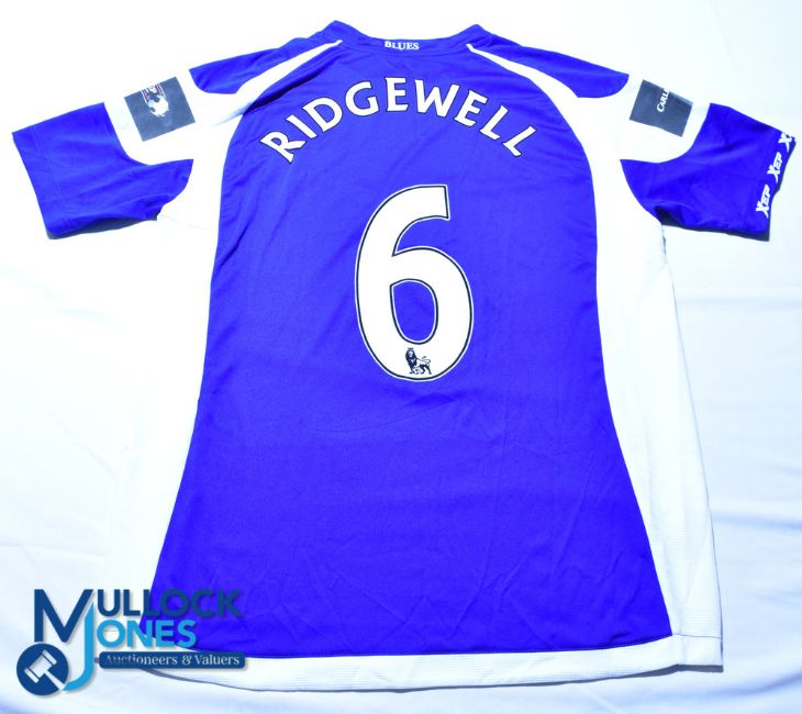 Birmingham City FC home football shirt - 2011 Carling Cup Final - #6 Ridgewell, XTep / F&C Investments - Size XL, blue, short sleeves
