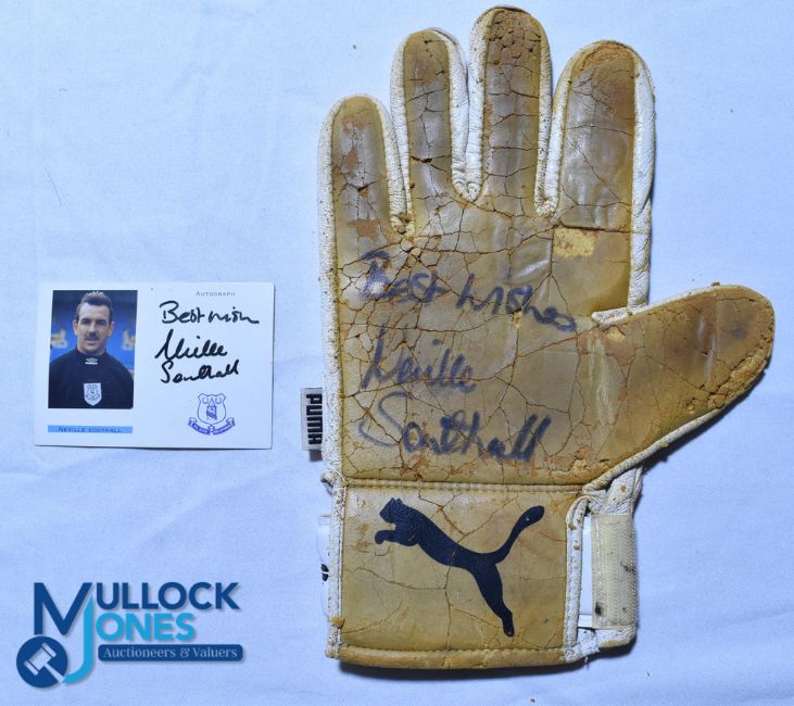 Neville Southall autographed Puma goalkeeper glove and Everton FC Card