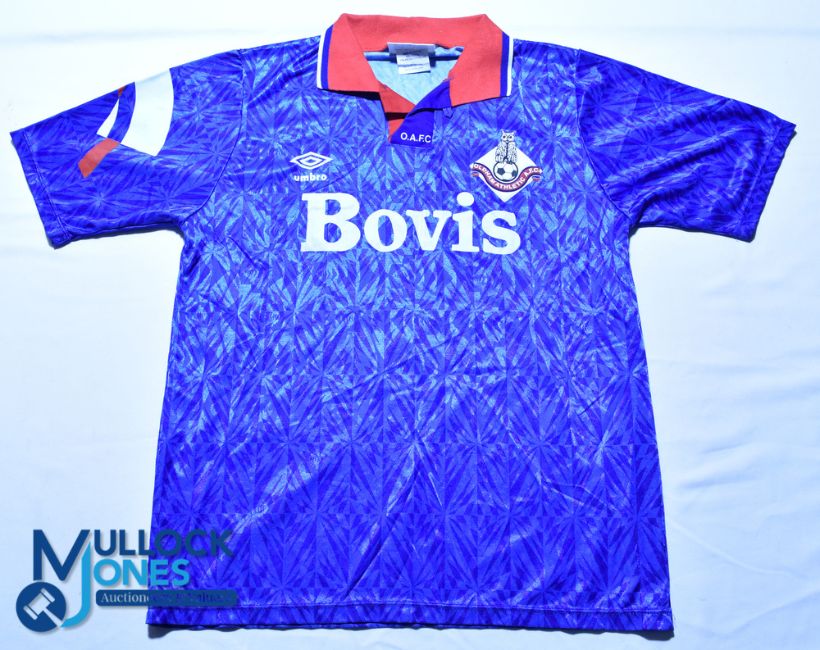 1991-1992 Oldham Athletic FC Home Football shirt - Umbro / Bovis, blue, short sleeves. Official Replica, G