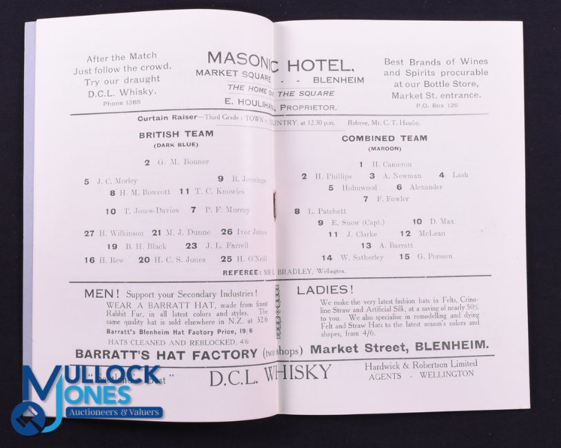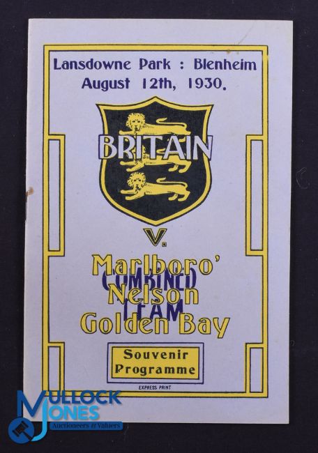 Rare 1930 Rugby Programme, British & I Lions v Marlborough, Nelson & Golden Bay: Official Programme from the game won 41-3 by the Lions. Excellent. Part of the WGM Bonner 1930 BRFT Lions Collection