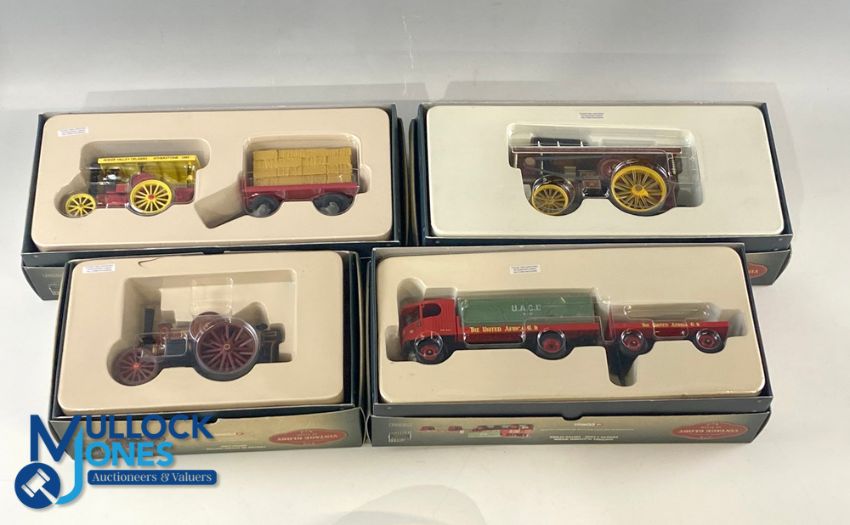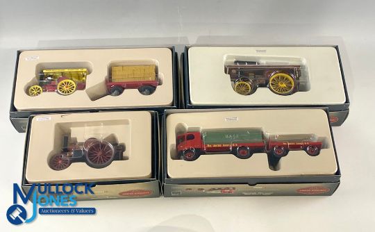Corgi Vintage Glory of Steam Showman Steam Engine Models, to include Garrett Road tractor 80307, Fowler B6 80103, Sentinel platform wagon 8007, Fowler B6 stump cutter 80111, all boxed looking unused (4)
