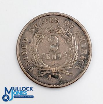 US 1864 Two Cent Piece Coin - small moto variant - in good used condition