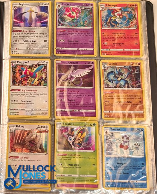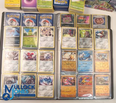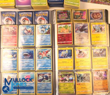 Pokémon Cards, a large collection of #1350 cards taken from boxed sets of Sword & Shield Silver Tempest 3 Pokémon tins x3 2023, elite trainer box sets x3, most of the cards are now with 3 Pokémon albums with #1350 cards, plus a selection of dice counters, star markers, a pack of energy cards - good collection