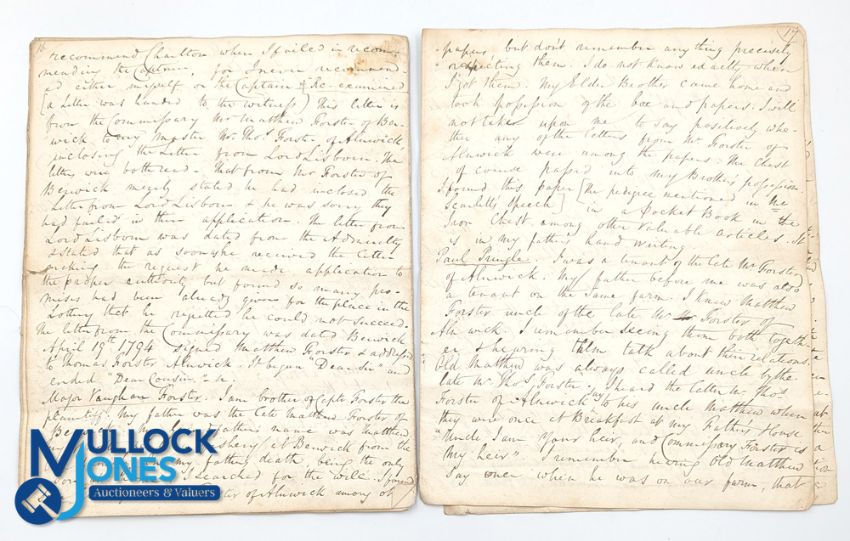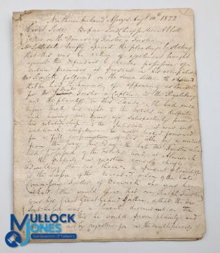 Legal - a remarkable manuscript being an eye witness report on a legal case at Northumberland Assizes in 1822 - The case involved the recovery of an important estate and was held in front of the Lord Chief Justice. 23pp 4to written in a close, legible hand, slight dusting to pages but otherwise fully legible throughout. A remarkable insight into the administration of justice in the early 19th c