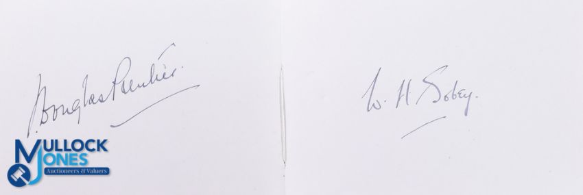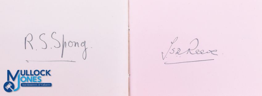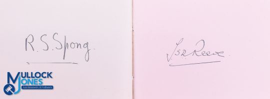 Rare 1930 British & I Lions Fully Signed Autograph Book: Clean padded leatherette book, 5" x 4", partially-filled with just the neat signatures - collected by Gordon Bonner in ink, one to a page - of each of the 29 British Lions and their manager, James Baxter. Marvellous memorabilia. Part of the WGM Bonner 1930 BRFT Lions Collection