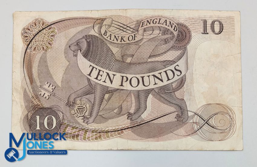 J S Fforde Ten Pound Banknote with Serial A54 302008 - circulated condition - has pen mark