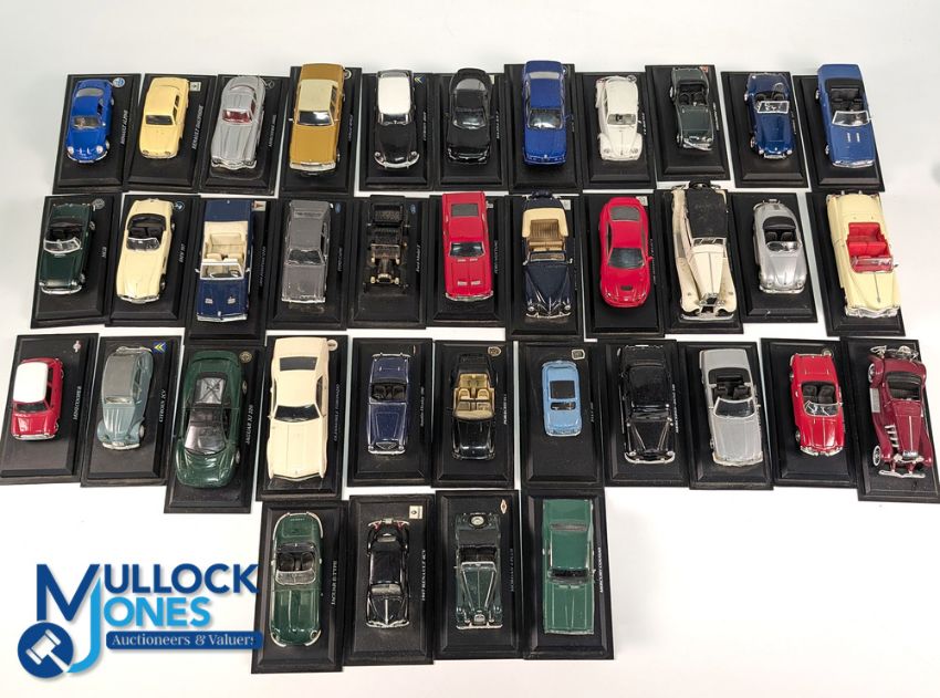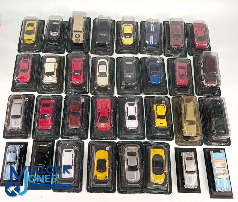 The Ultimate Car Collection By Del Prado: a collection of boxed and unboxed 1:43 scale cars and paperwork (#76), 26 with acetate boxes - no paperwork, 4 loose cars have noted damage otherwise good, in 2 boxes