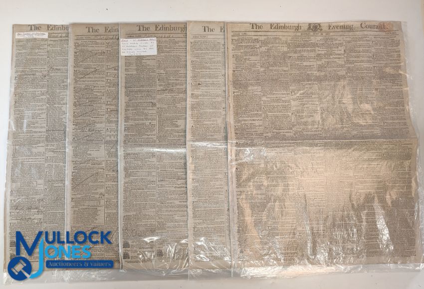 Five editions of The Edinburgh Evening Courant Newspaper from the Napoleonic Wars era 1810-1813 - 21/6/1810, 22/9/1810, 1/12/1810, 4/7/1812 and 28/6/1813 includes articles on Shipping, Farming, Golf, Estates, etc (5)