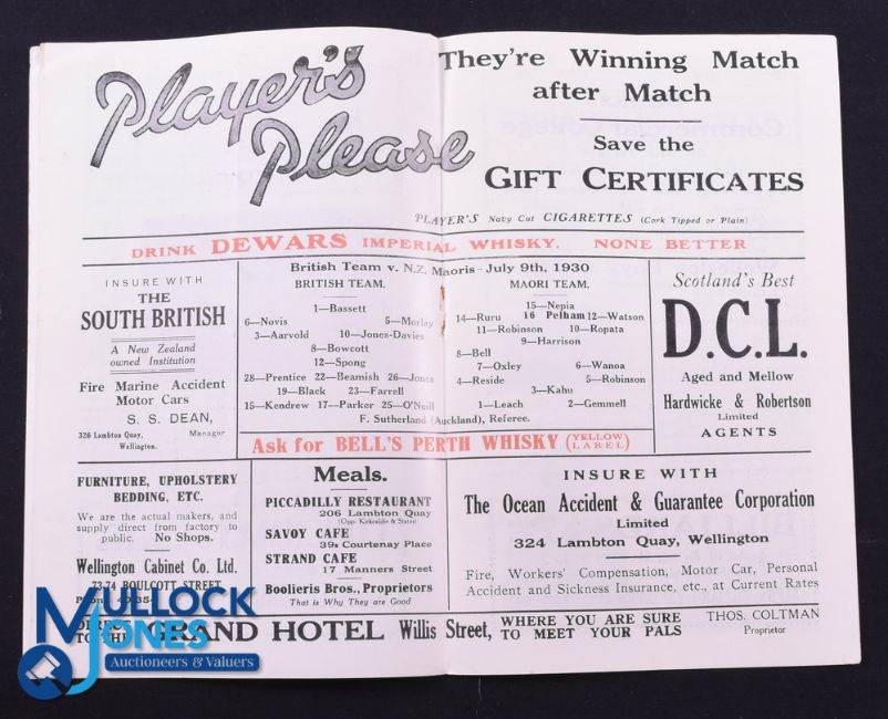 Rare 1930 Rugby Programme, British & I Lions v NZ Maori: Official Programme from the game won 19-13 by the Lions. Excellent. Part of the WGM Bonner 1930 BRFT Lions Collection