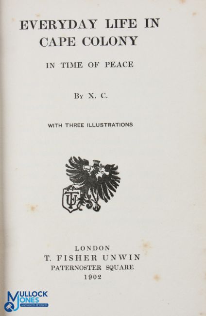 Everyday Life in Cape Colony in Time of Peace 1902 - by X C, authors presentation copy to Dr Hyde, 127pp, 3x plates, bound in illustrated beige cloth, London 1902, good clean condition