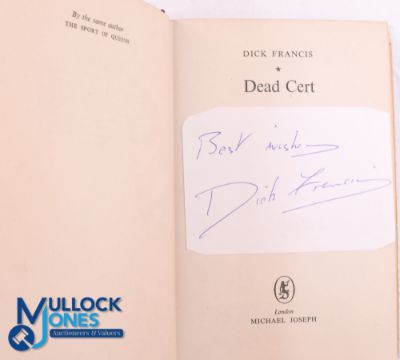 A collection of twenty-five Dick Francis Hardback Books, all are first edition including Dead Cert 1962 with a Dick Francis signed piece of paper laid down on title page, see image, Twice Shy 1981, Reflex 1980, Whip Hand 1979, Bolt 1986, Rat Race 1971 (USA edition), For Kings 1965, Flying Finish 1966, The Sport of Queens 1969 (USA Edition), In the Frame 1976, Bonecrack 1971, Trial Run 1978, Straight 1989, The Edge 1988, To the Hilt 1996, Under Orders 2006, Longshot 1990, Wild Horses 1994, Decider 1993, Field of 13 1998, 10lb Penalty 1997, Shattered 2000, Hot Money 1987, Decider 1993, Comeback 1991 - VG/G