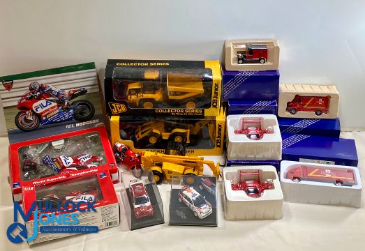 Diecast Vehicles Collectables, to include Corgi Royal Mail Millennium collection 5 boxed items, 2 boxed plastic JCB collector series, 2 NewRay motorcycle models, Vitesse Ford Focus WRC limited edition Oxford diecast Vauxhall, plus a few loose items (2 boxes)