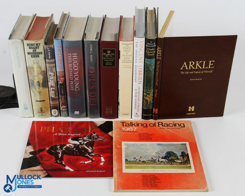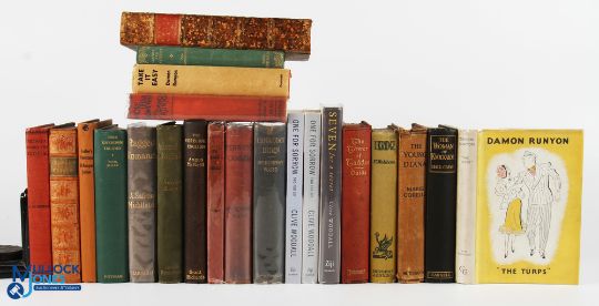 Mixed Selection of Books (#50) - various fields but including Louder and Funnier and Ukridge by Wodehouse and The Four Feathers by A E W Mason, and three titles by Damon Runyon, Military Fiction - comprising: Allan Mallinson: On His Majesty's Service (two copies); Warrior; Man of War (two copies) ; Company of Spears (three copies), An Act of Courage - all signed by the author; together with: Iain Gale - Keane's Company and Rules of War; Tom Connery: Honour Be Damned; Sean Thomas Russell; A Battle Won and A Ship of War and non-fiction (5 Boxes)