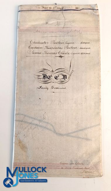Ireland - extensive deed on 12pp large folio parchment dated 1865 being a family settlement for a vast amount of lands and property in Kildare, Tipperary and Louth in Ireland. Considerable information on land holdings etc
