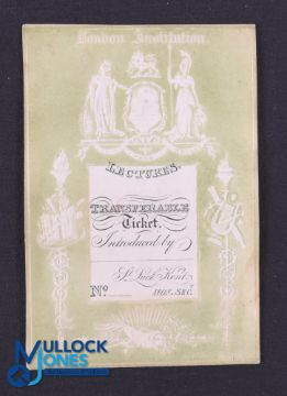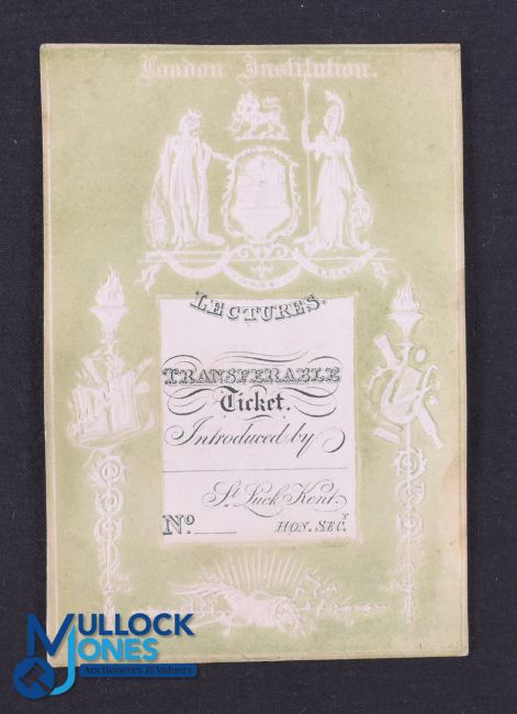 London Institution - Invitation To Lectures Ticket c1830s - Allegorical figures and representations of the Arts & Literature. Attractive printing and embossed designs on card, size 3" x 4½"