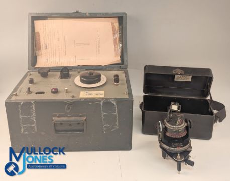 Air Ministry Wavemeter A M W1239 in wooden crate/box, with an astro compass MKII in plastic storage case good condition. (2)