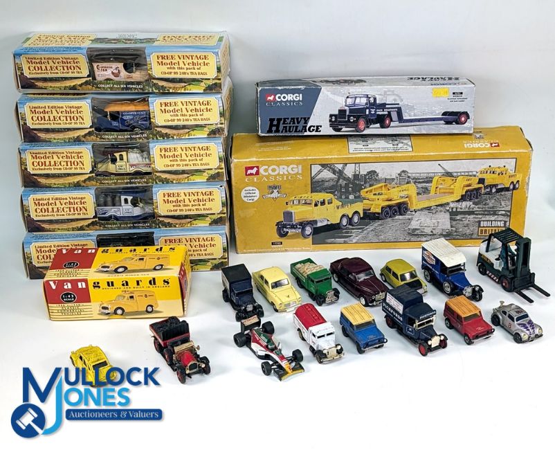 Diecast Corgi Vanguards, to include boxed Corgi Classic 16701 - Building Britain 17702, 5 Co-op Tea promotional cars, AA Moris Minor Van, plus a loose selection of Matchbox, Vanguards, Corgi, in used condition, the boxes do show some signs of wear, contents are good