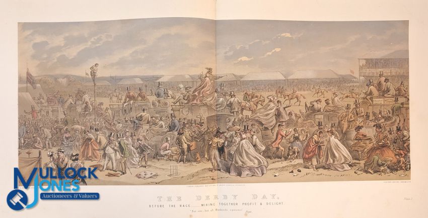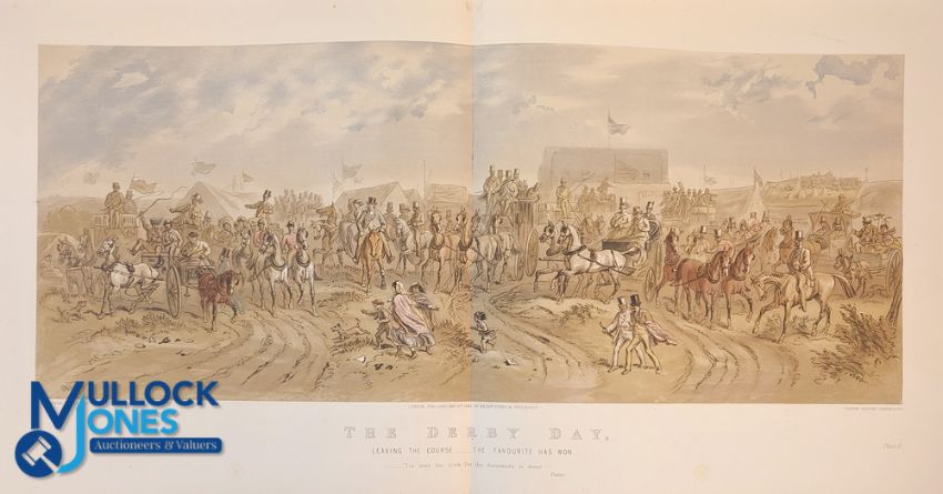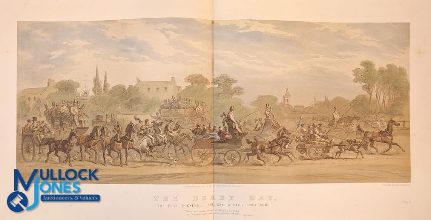 Eight Derby Day Prints: After Hablot Knight (Phiz) Browne 'Before the Race The Race'; 'The Plot Thickens'; 'The Stalking Post'; 'Down the Road'; 'The Return'; 'Leaving the Course'; 'Nearing Home' lithographs, outer boards show signs with the front board loose of wear inner lithographs all clean each 29 x 74.5cmn (11 7/16 x 29 5/16in). (8)