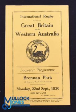 Very Rare 1930 Rugby Programme, British & I Lions v Western Australia: Official Programme from the game won 71-3 by the Lions. Excellent. Part of the WGM Bonner 1930 BRFT Lions Collection