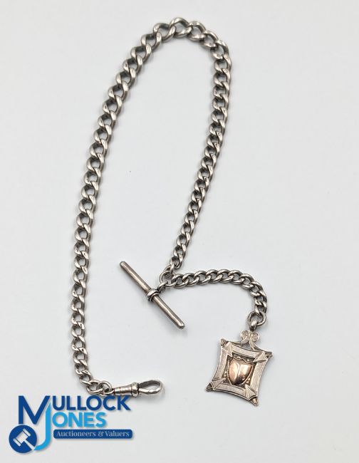 Silver Hallmarked Pocket Watch Fob Chain, with fob unengraved (gold fronted), graduated chain, silver T bar and lobster clips chain #40cm long 51g