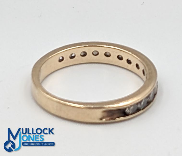 Yellow Gold Half Eternity Ring 10K with channel set 14 round bright cut diamonds total .42ct, I colour, s12 clarity 3.1g total weight