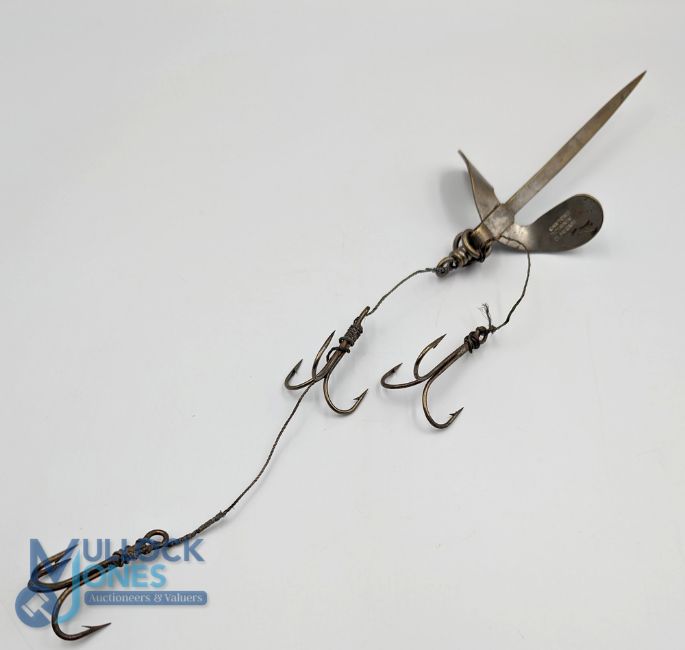 Large 6" Hardy Natural Bait Spinner Lure, with makers mark stamped to fin, as seen in Hardy 1912 catalogue p160 - with trace and large trebles, most likely for Tunny big game fishing