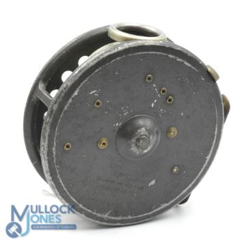 Hardy The St George 3 3/4" vintage fly reel, 2 screw latch, Hardy nickel O line ring guide, rim tension adjuster and correct 60mm ribbed brass foot, reel winds smooth, retains good original finish, comes with Hardy padded zip reel case.