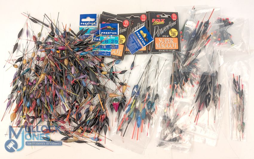 Collection of Very Small Pole Floats #100 with a selection of hooks, in need of some sorting