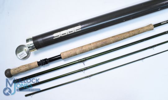 Sage USA Z-AXIS Generation 5 Technology carbon salmon fly rod 9 1/16 oz No 10150-4, 15ft 4pc line 10# 24" handle with double alloy uplocking reel seat, lined stripping rings, MCB and alloy tube, light use