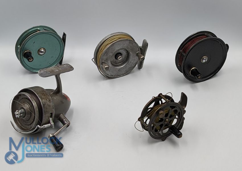 A collection of reels, as follows: J W Young Condex, blue. J W Young Condex, black. Harrington The Little Kraken. Skeleton Reel 60. Harrington Omnia half bail fixed spool. All run okay and need a service. (5)