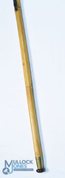 Vintage bamboo handle Simplex pattern trout landing net, 30" handle, the brass butt cap stamped with Hardy details, cord wrapped grip with belt c lip, spring fold painted alloy head with modern mesh.