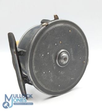 Hardy Bros early Silex Dingley 4 ½” reel stamped D internally, with smooth alloy foot, twin handle, rim tensioner and rim check lever, quarter rim cut out, quick release spool, G overall